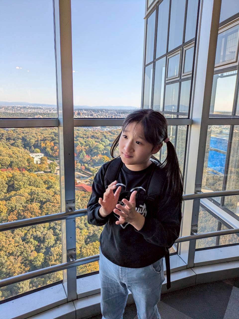 こちらは東山動植物園のシンボルスカイタワー✨エレベーターで展望室まで登り、景色を楽しみました!エレベーターは全面ガラス張りで外が丸見え👀スリルが味わました😆展望室では、360°辺りを見渡すことができました!少しずつ紅葉も始まっておりとっても綺麗でした🍁✨