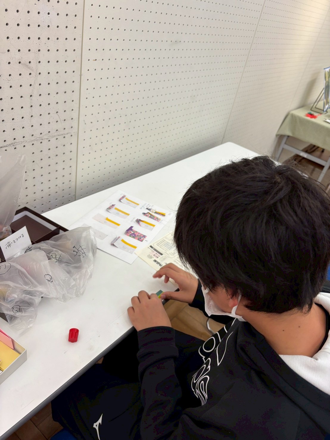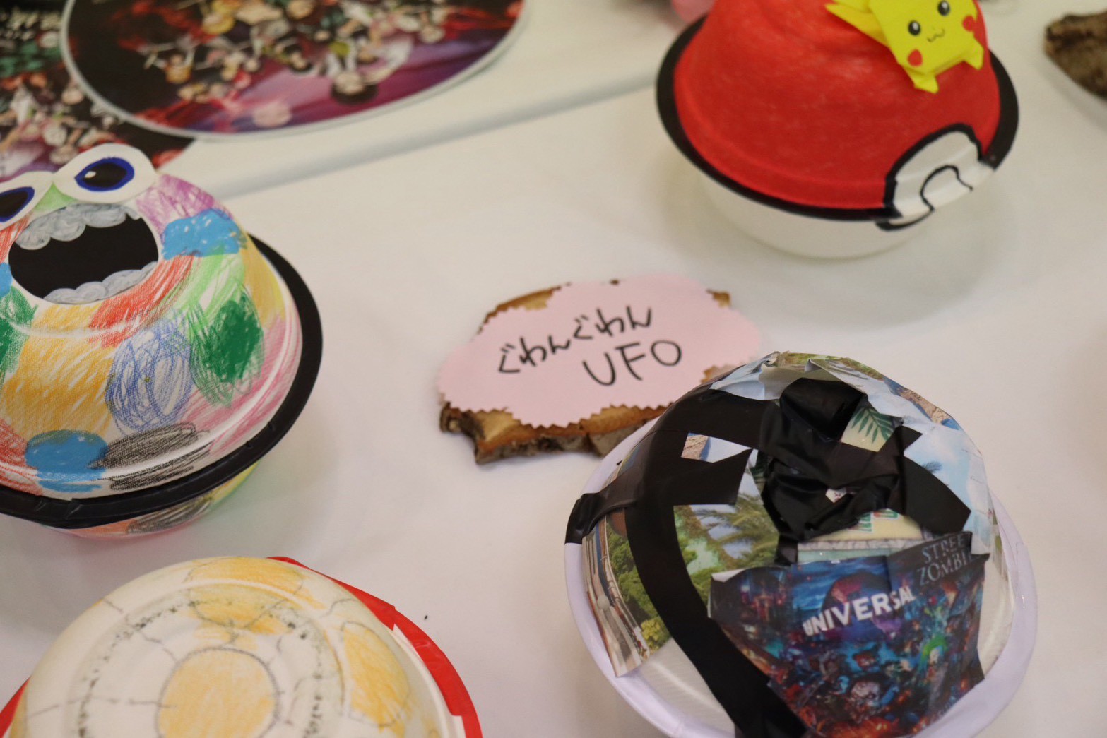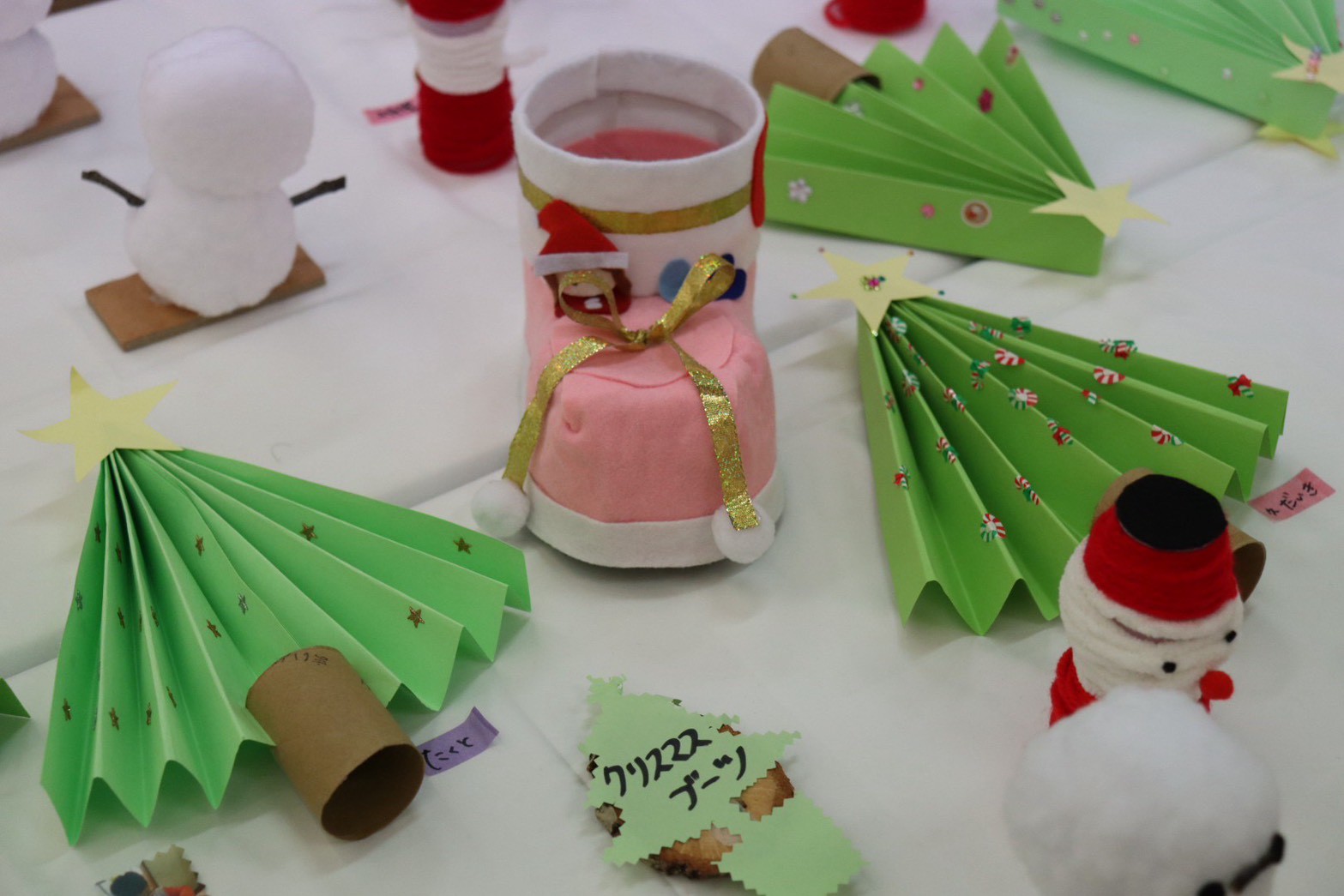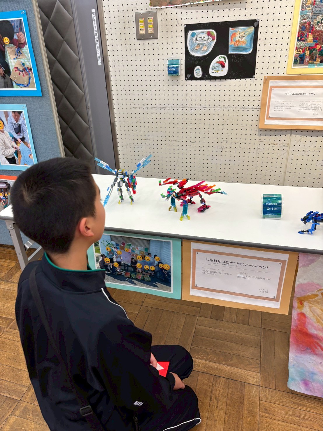 机の展示スペースには、ここ1年で制作した作品を並べました✨自分の作品を見つけると、「あった!」「これ私の!」と、みんなとっても嬉しそうに教えてくれました🎶