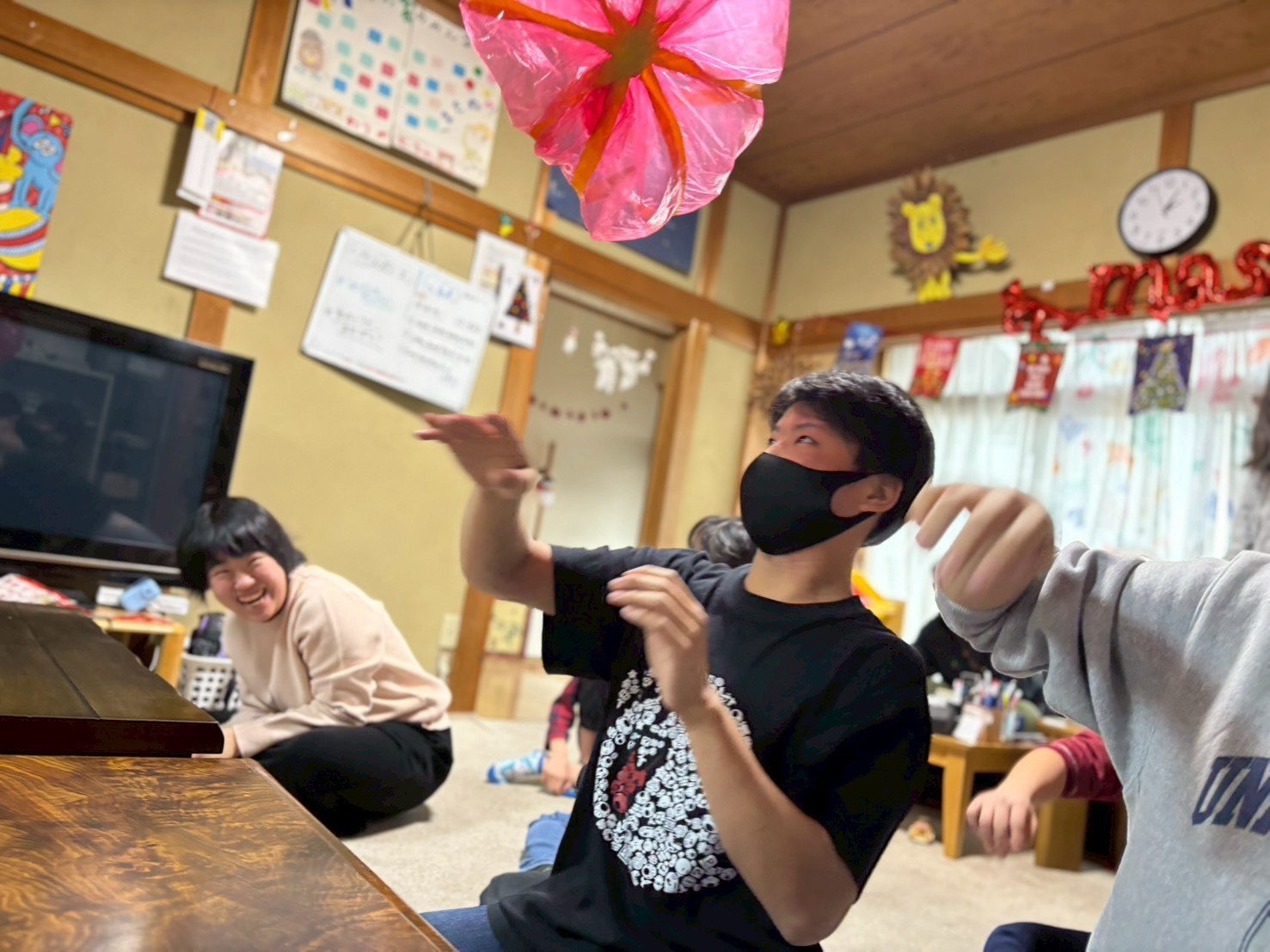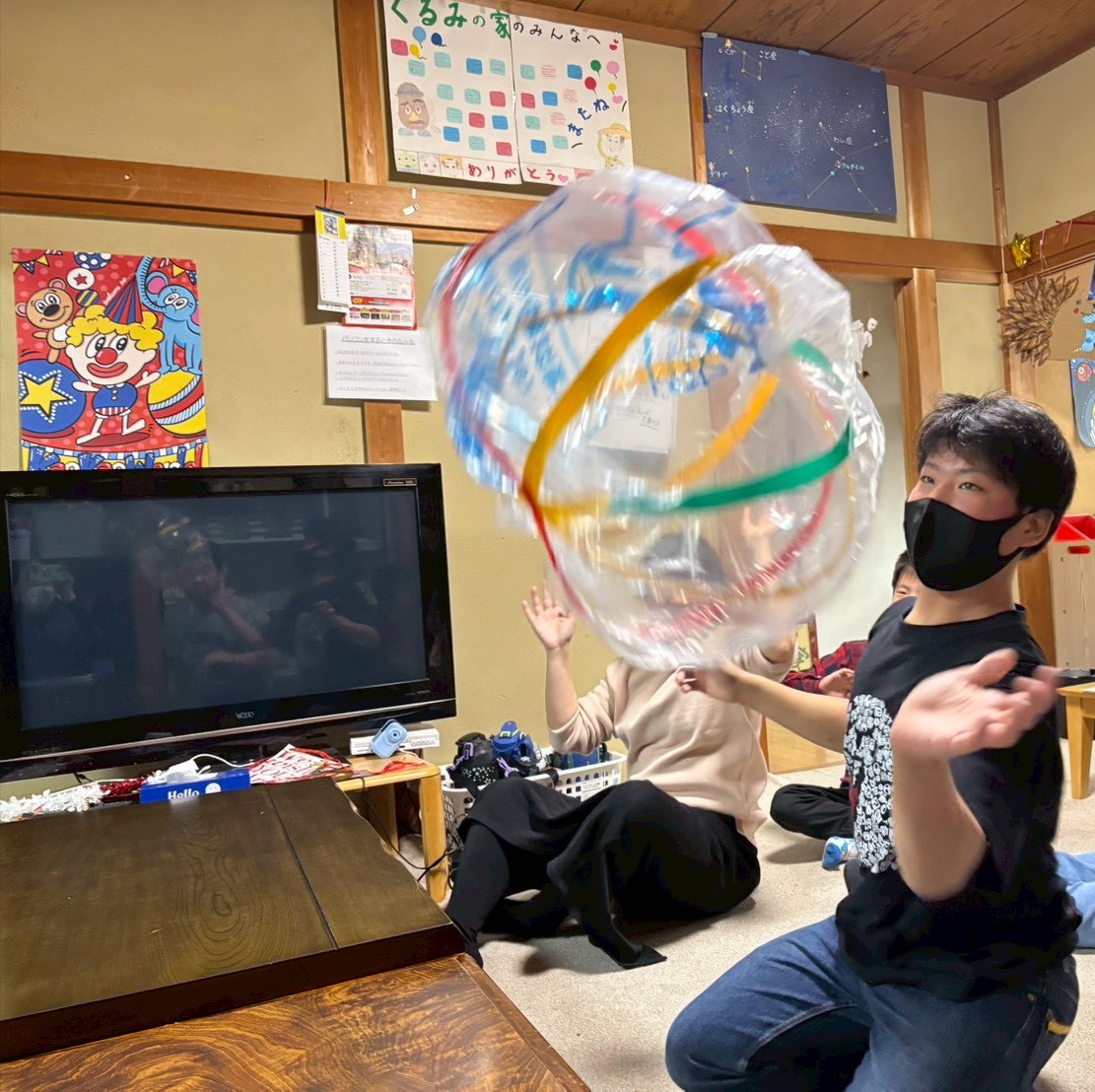 ビニールボールは手作りでしたが、熾烈なラリーに耐えきれず、途中で何度も新しいものに交換しました(笑)汗をかくほど体を動かし、終わった後は「楽しかった!」と児童たち🎶またやろうね!