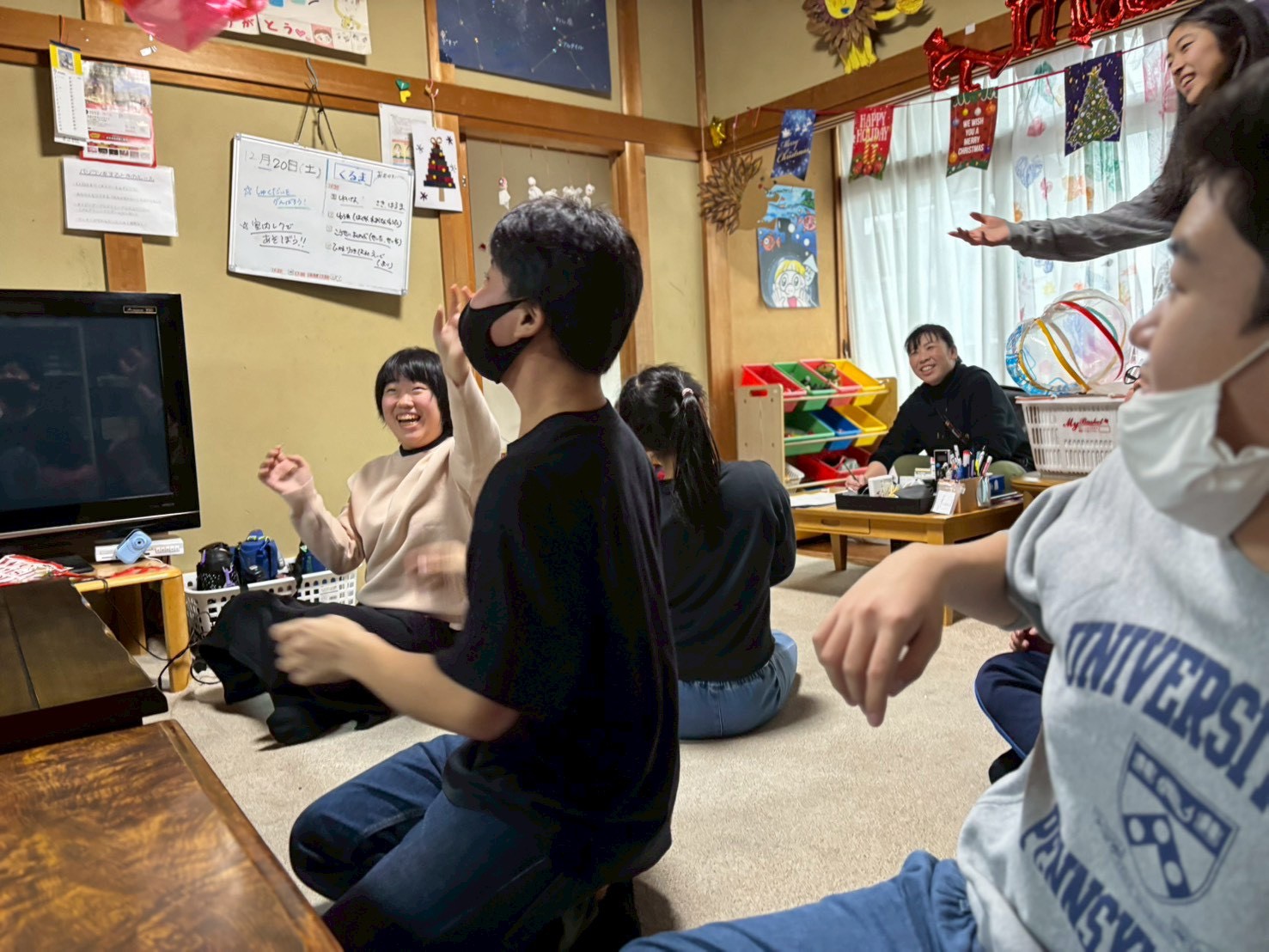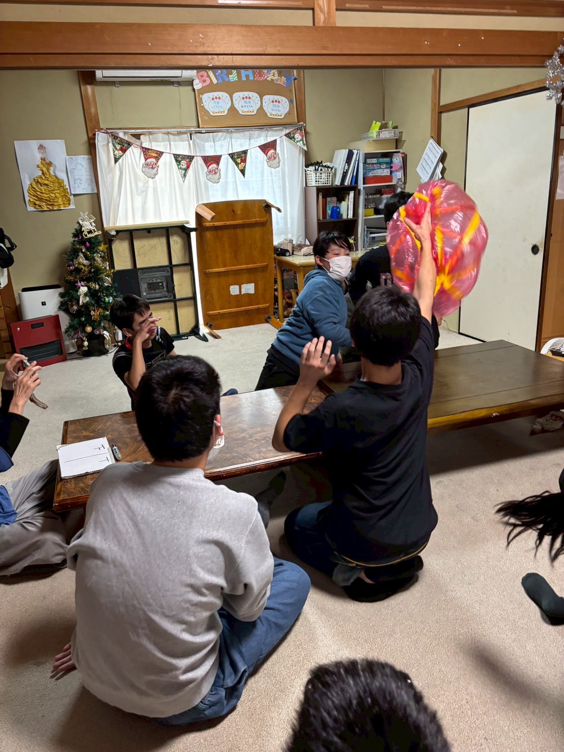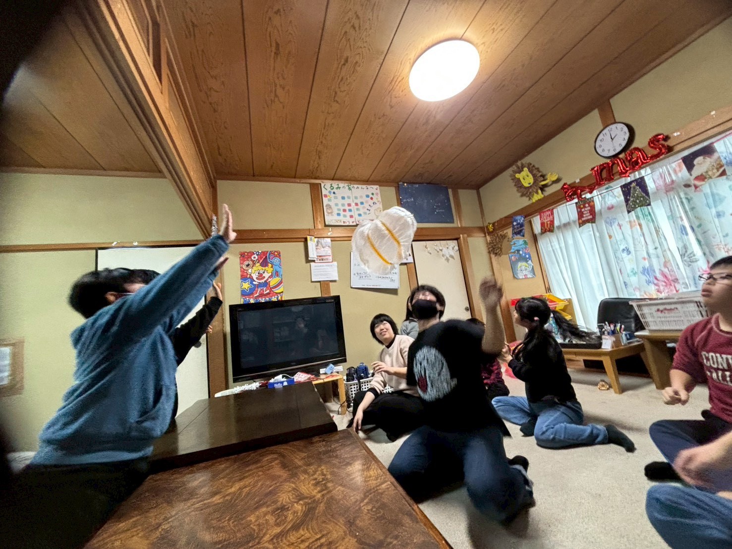 豊明では、ビニールボールを使ってバレーをしました!チームを半分に分けて試合スタート!みんなで声を掛け合いながら必死にボールを追いかけ、ラリーもたくさん続きました✨得点が入ると「やった〜!」と大盛り上がりでした😆