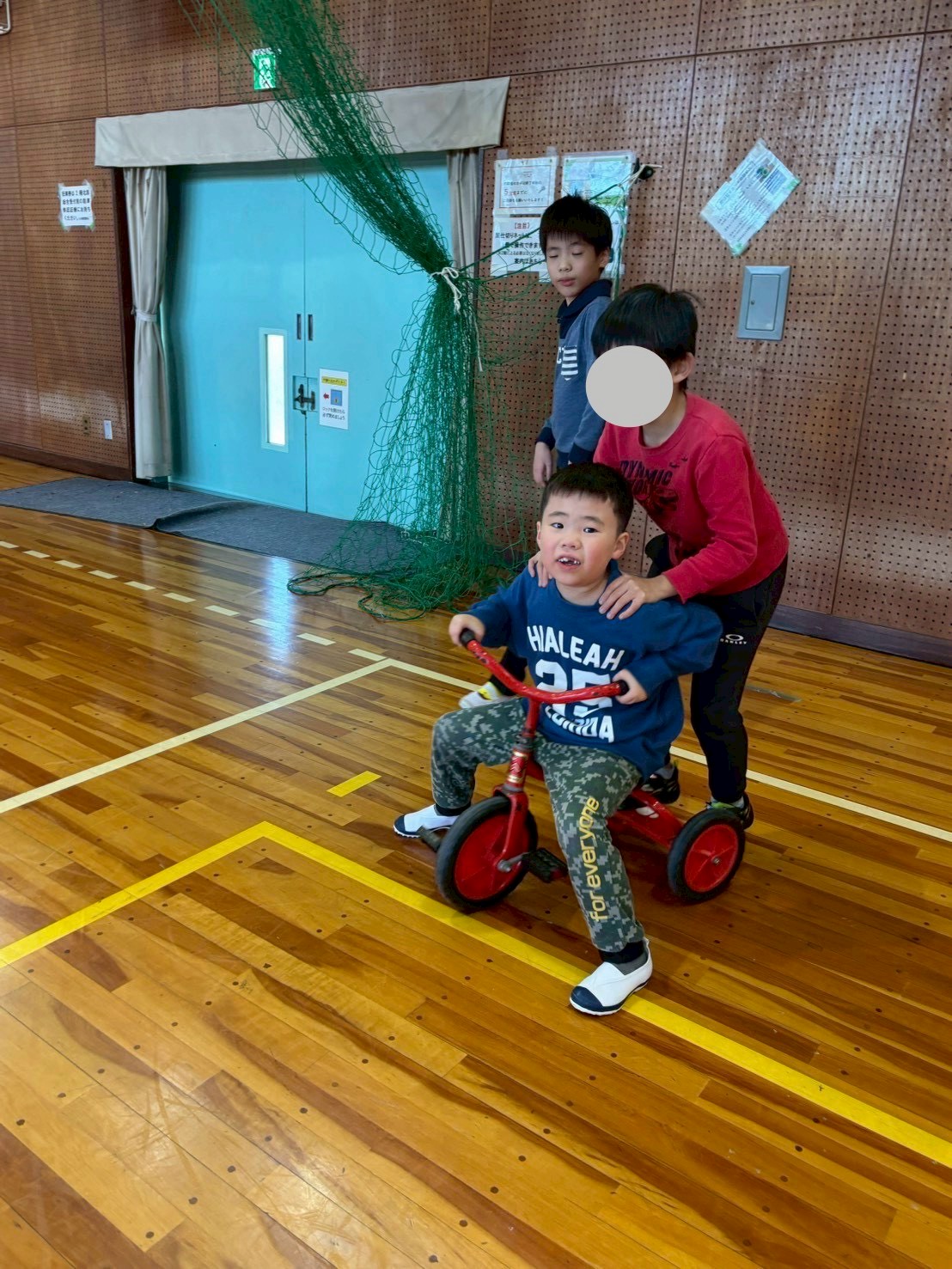 他にも肋木に登ったり、三輪車に乗って体育館内を走り回ったり🎶思い思いの遊びを楽しんでいました😊