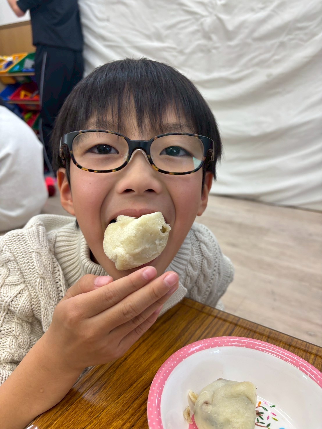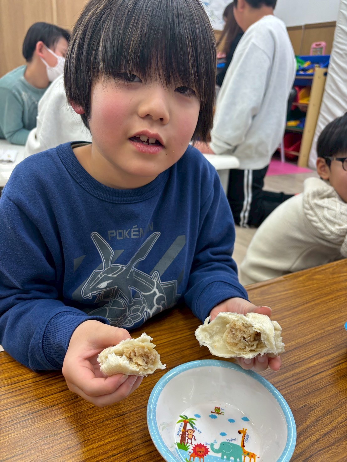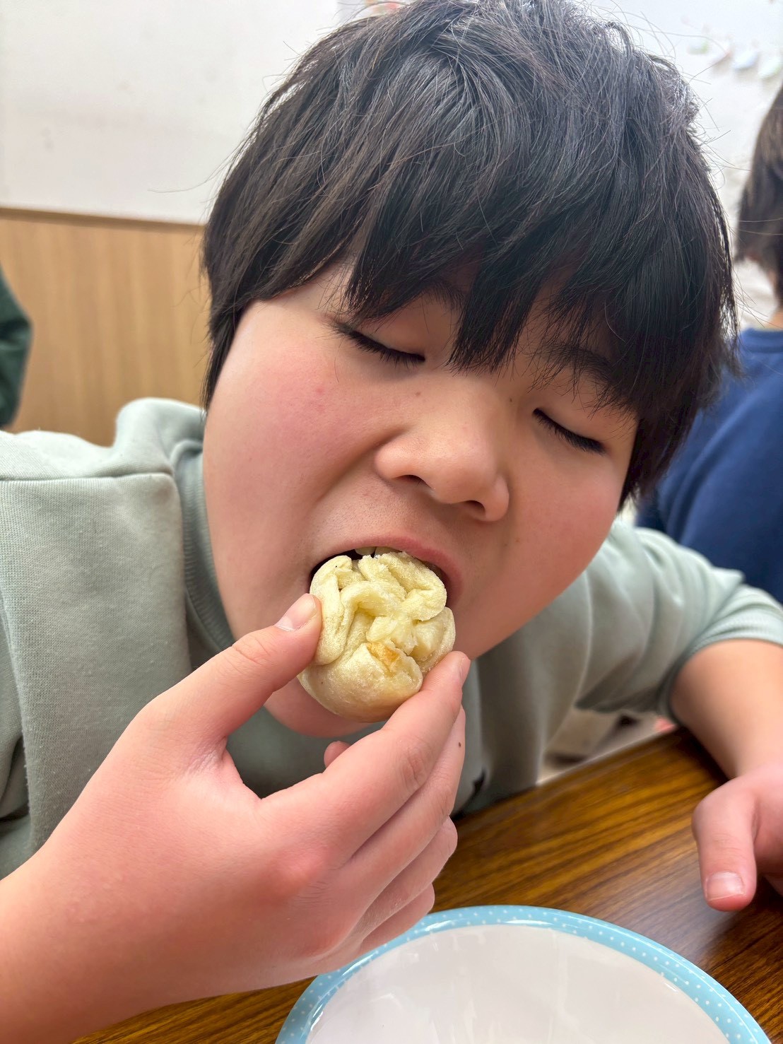 ホクホクで「美味しい!」と大好評✨「肉まんの味そっくり!」とみんなとっても嬉そうに食べていました😆