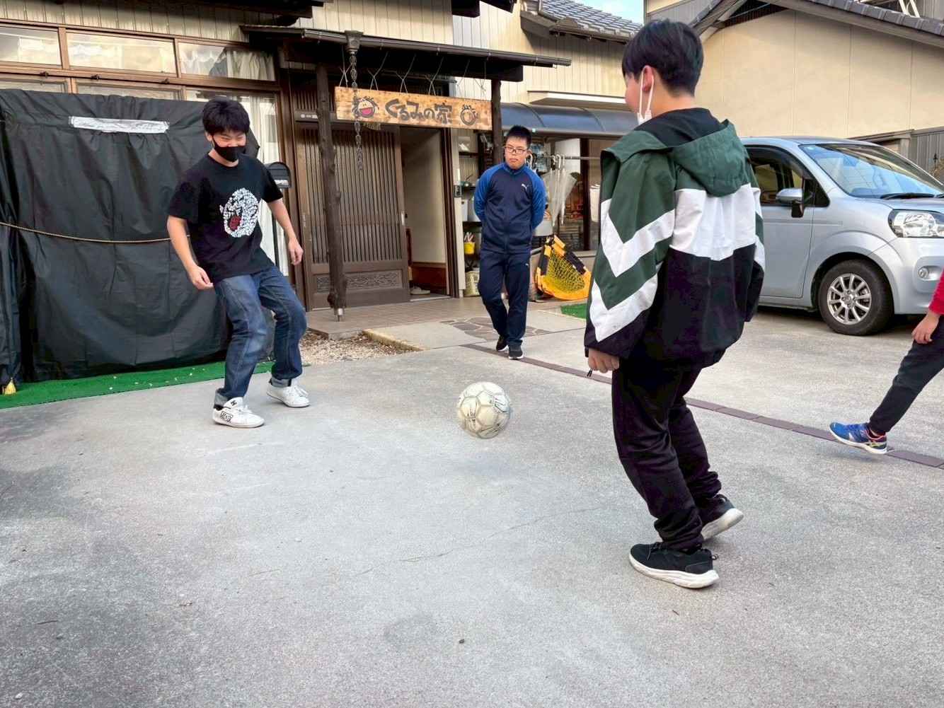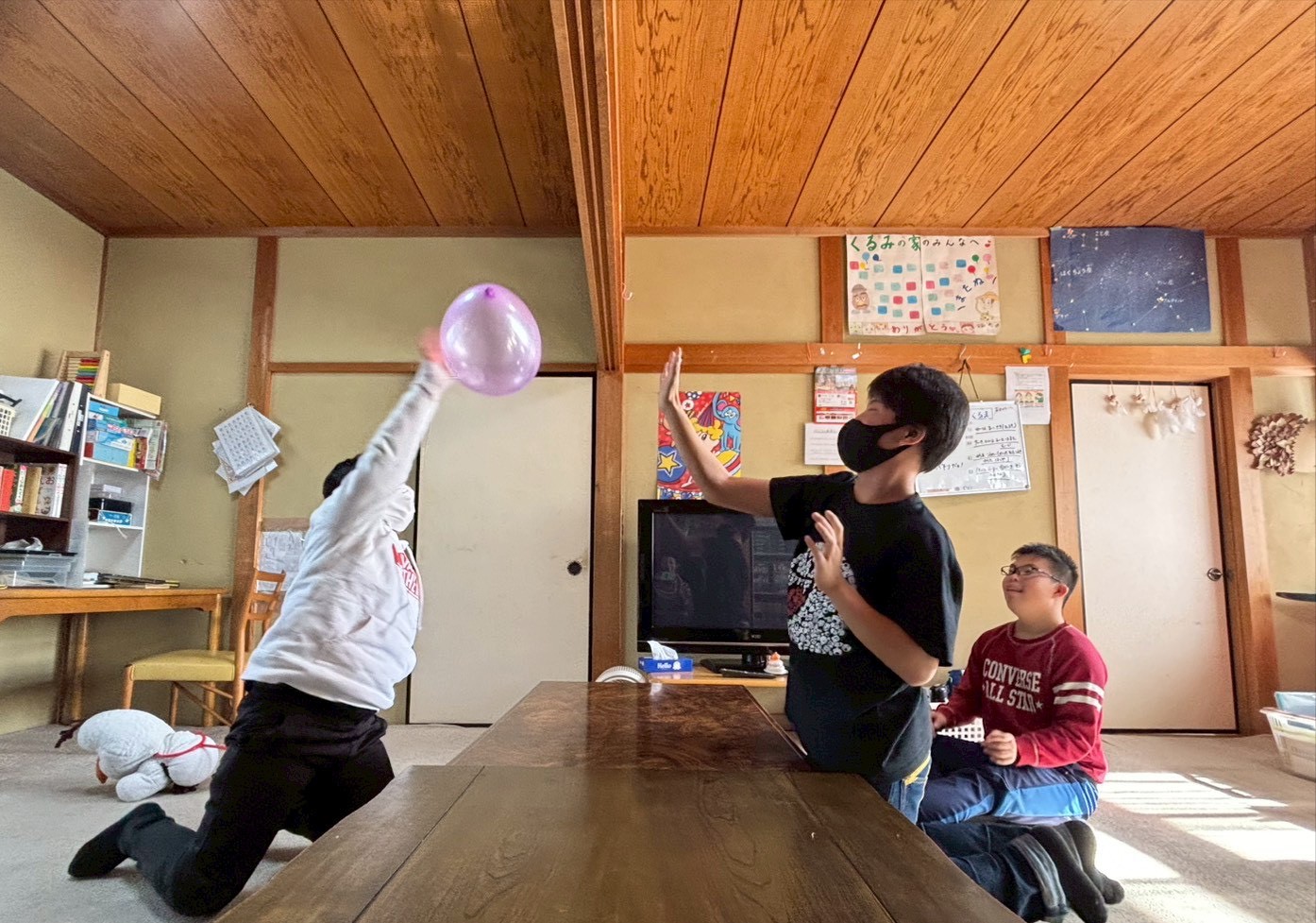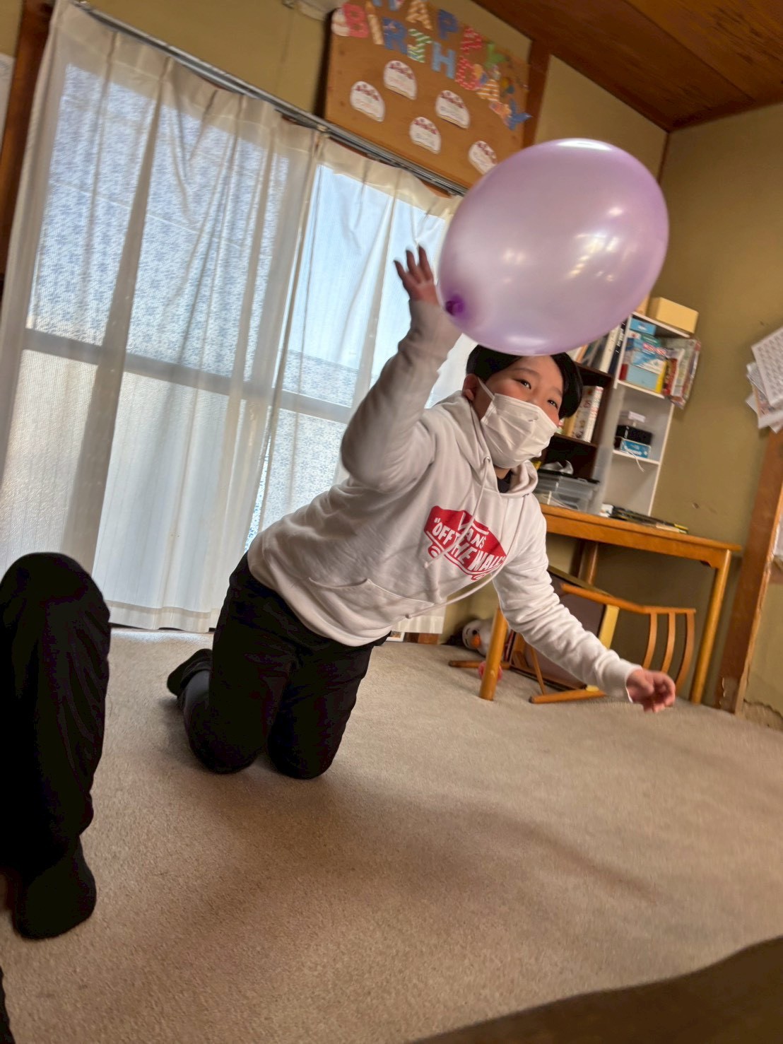 余暇時間は、外に出てサッカー・バトミントンをしたり、室内では風船バレーをしたりして楽しく過ごしました😊