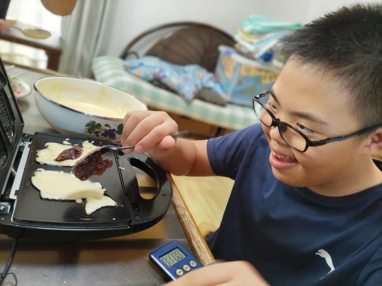 生地を入れ、あんこをたっぷり乗せたら、蓋をしてロック!