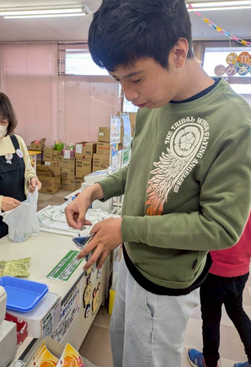 豊明は午後からお菓子カンパニーへ出かけました🍬今回も100円分好きなお菓子を選び、支払いも自分で行いました✨たくさんの種類の中からみんな悩みながら選んでいましたよ😊